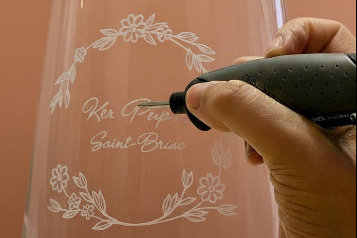 Fleur de Verre est un atelier parisien de gravure sur verre, où chaque création est pensée sur mesure, et où chaque objet est gravé avec soin.
